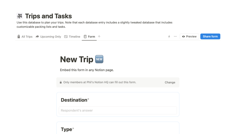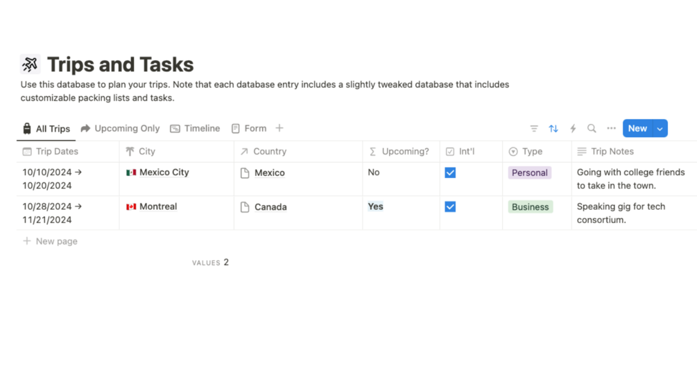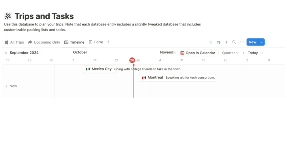 Visualize your trips over time. (Paid Notion plans, only.)