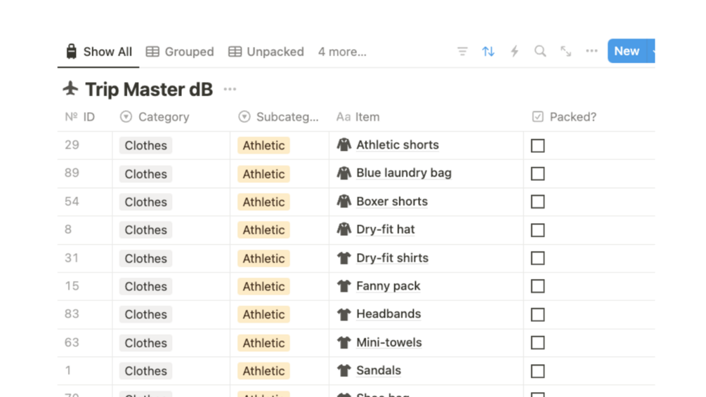 A comprehensive, contemporary, and customizable system to ensure that you don't forget a thing on your trip.